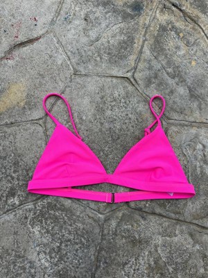 I love this swimsuit top! Unfortunately I ordered it in the wrong size but will definitely be going back to get the right size, it did not cover enough for my liking. For reference I am a size 36 D and the medium fit but was a bit too showy for my taste. I am obsessed with the color. It is a very bright neon pink and looks great in person. I like how they used metal finishings for it instead of plastic as well. My only negatives are that it does not come with padding (if you like option) and also it did seem to run on the small size so if you want more coverage I would order a size up.