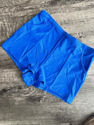 As someone who prefers more coverage with my bathing suits I was very happy to find these shorts. They are so comfortable and offer perfect full coverage. The pockets are really handy as well. I love the blue color. It’s nice and bright just like advertised. They fit really well and are definitely true to size. They’re also very flattering. I had no issues with them riding up while in the water. They washed very well and came out like new. Definitely a great buy.