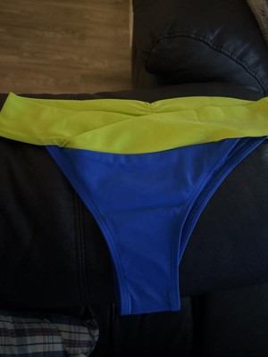 I received these products for free from the Hey, Bullseye sampling program in exchange for my honest review. This bikini bottom is really great quality. Its is a little cheeky in the back but i like that. I like the blue with yellow, they are bright colors. Great details with the crossover in the front and the scrunching in the back.