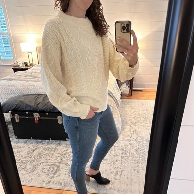 Women's Long Sleeve Cozy Alpine Cable Knit Crewneck Pullover Sweater - Universal Thread™ Cream - 2 of 3Women's Long Sleeve Cozy Alpine Cable Knit Crewneck Pullover Sweater - Universal Thread™ Cream - 3 of 3