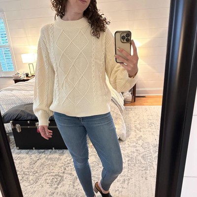 Women's Long Sleeve Cozy Alpine Cable Knit Crewneck Pullover Sweater - Universal Thread™ Cream