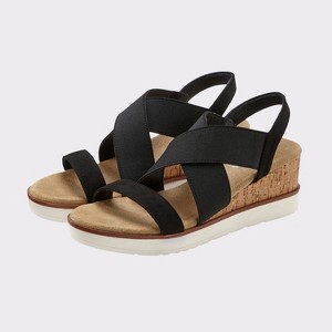 You can dress these wedge sandals up or down depending on the occasion. * With elastic straps to slip on and off easily * Comfortable wedge heel * Timeless design * Heel height approx. 2.36 inches * Upper material: microfiber. Lining: imitation leather. Insole: imitation leather. Sole: synthetic. Imported. * Do not wash