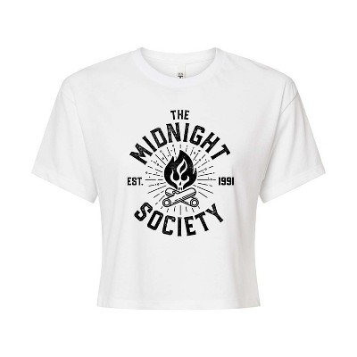 Women's Are You Afraid Of The Dark? Keep It Creepy Cropped Graphic T-Shirt - White - 2 X-Large
