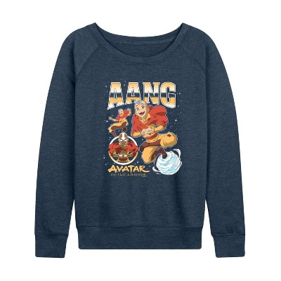 Women's Avatar - The Last Airbender Aang Air Bending Lightweight French Terry Wide Neck Long Sleeve Graphic Shirt - Heather Indigo - Medium