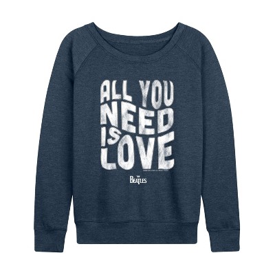 Women's Bad Company Logo Dark Lightweight French Terry Wide Neck Long Sleeve Graphic Shirt - Heather Indigo - X-Large