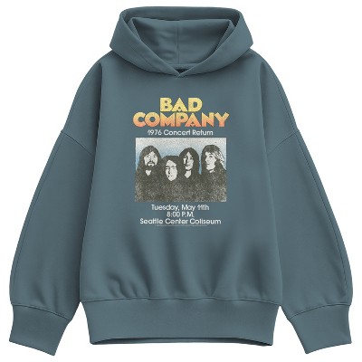 Women's Bad Company Logo Dark Oversized Fleece Hoodie Sweatshirt - Flint Blue - Small