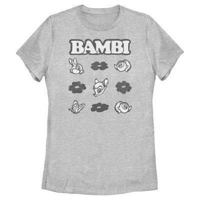 Women's Bambi Friends With Nature Artistic Sketch T-Shirt - Athletic Heather - Large
