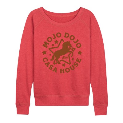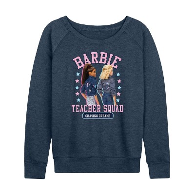Women's Barbie Birthday Lightweight French Terry Wide Neck Long Sleeve Graphic Shirt - Heather Indigo - X-Large