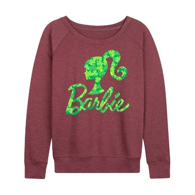Women's Barbie Easter Lightweight French Terry Wide Neck Long Sleeve Graphic Shirt - Heather Maroon - 4X
