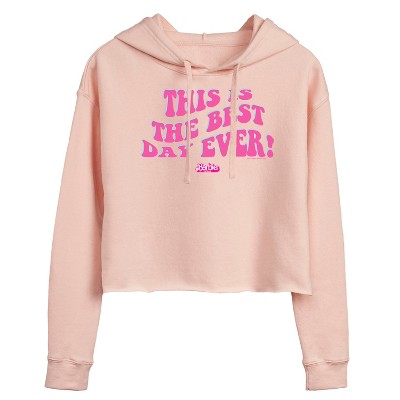 Barbie The Movie - Flat Feet - Juniors Cropped Pullover Hoodie - Step into the glamorous pink world of Barbie with our officially licensed graphic garments for the fashion-forward! Whether you dream of being a fashion designer, a mermaid princess, or a world-traveling explorer, our garments bring Barbie's world to life with vibrant colors and playful prints. Crafted with quality materials and attention to detail, each piece ensures comfort and durability for all-day play. Express your unique sense of style and imagination with our exclusive Barbie graphic apparel!