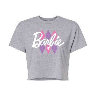 Barbie the Movie - Heart Crest - Juniors Cropped Cotton Blend T-Shirt - Step into the glamorous pink world of Barbie with our officially licensed graphic garments for the fashion-forward! Whether you dream of being a fashion designer, a mermaid princess, or a world-traveling explorer, our garments bring Barbie's world to life with vibrant colors and playful prints. Crafted with quality materials and attention to detail, each piece ensures comfort and durability for all-day play. Express your unique sense of style and imagination with our exclusive Barbie graphic apparel!