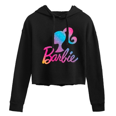 Women's Barbie Holiday & Christmas Cropped Graphic Hoodie - Black - Medium