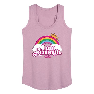 Barbie The Movie - I Am Kenough - Women's Racerback Tank Top - Step into the glamorous pink world of Barbie with our officially licensed graphic garments for the fashion-forward! Whether you dream of being a fashion designer, a mermaid princess, or a world-traveling explorer, our garments bring Barbie's world to life with vibrant colors and playful prints. Crafted with quality materials and attention to detail, each piece ensures comfort and durability for all-day play. Express your unique sense of style and imagination with our exclusive Barbie graphic apparel!