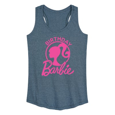 Barbie - Lifestyle Silhouette - Iconic Barbie - Classic Style - Women's Racerback Tank Top - Step into the glamorous pink world of Barbie with our officially licensed graphic garments for the fashion-forward! Whether you dream of being a fashion designer, a mermaid princess, or a world-traveling explorer, our garments bring Barbie's world to life with vibrant colors and playful prints. Crafted with quality materials and attention to detail, each piece ensures comfort and durability for all-day play. Express your unique sense of style and imagination with our exclusive Barbie graphic apparel!