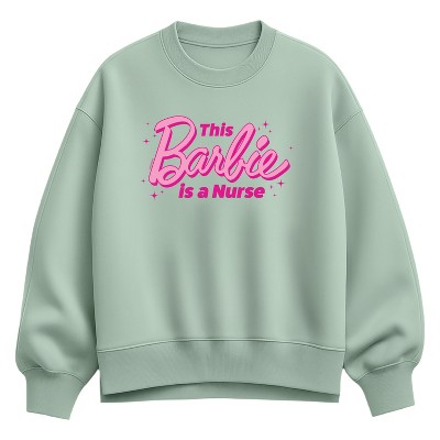 Women's Barbie Malibu Beach Car Oversized Fleece Crew Sweatshirt - Cream - Small