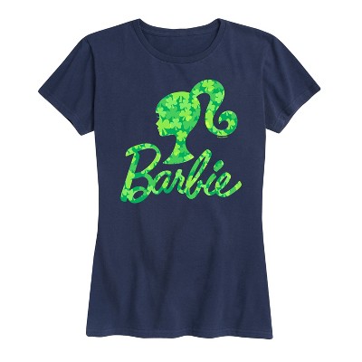 Women's Barbie Pink Glitter Logo Short Sleeve Graphic T-Shirt - Navy - Small