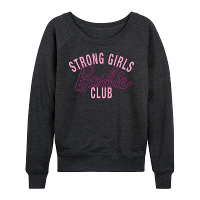 Women's Barbie Sunny Days Ahead Lightweight French Terry Wide Neck Long Sleeve Graphic Shirt - Heather Charcoal - Medium