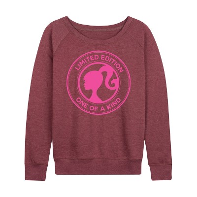 Women's Barbie Web Head Lightweight French Terry Wide Neck Long Sleeve Graphic Shirt - Heather Maroon - Small