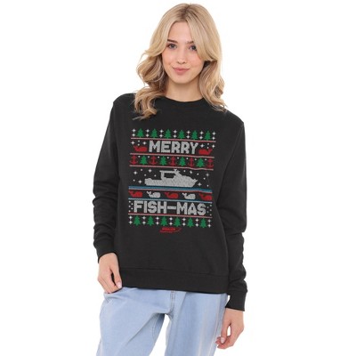 Women's Batman Bat Symbol Christmas Santa Hat Crew Sweatshirt, Black, Small