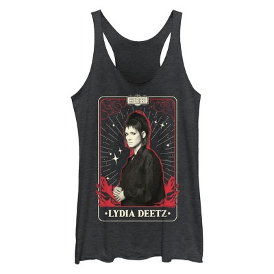 Women's Beetlejuice Beetlejuice Astrid Black and White Tarot Card Racerback Tank Top - Black Heather - X Small
