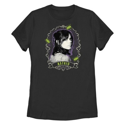 The Geuse is loose… and new horrifying adventures are about to unfold! Join Lydia, Astrid, and Delia Deetz on their return to Winter River with this new officially licensed Beetlejuice Astrid Frame Maternity Graphic T-Shirt! This unique design features a black-and-white portrait of Astrid framed by beetles with her name written in distressed green lettering below. Don't wait another thirty-six years in the Afterlife to celebrate Beetlejuice's return with awesome apparel for the whole family!