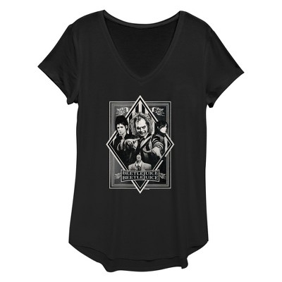 • Enjoy comfort and fashion at the same time with this unique women's graphic V-neck tee design from Beetlejuice.