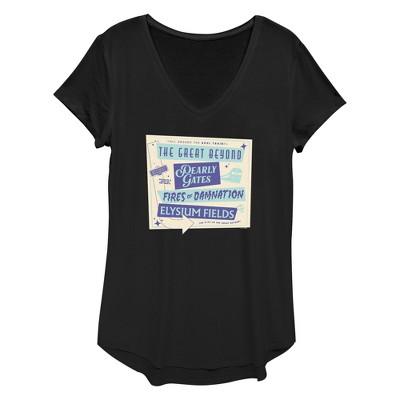 • Enjoy comfort and fashion at the same time with this unique women's graphic V-neck tee design from Beetlejuice.