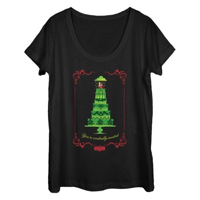 • Strut your stuff with this stylish new women's racerback tank top that is perfect for every occasion! Featuring the iconic wedding cake of Beetlejuice and Lydia Deetz, along with the message: "You're Cordially Invited," all within a red frame across the front.