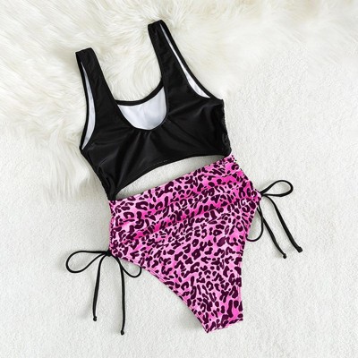Women's Bikini Sets U Back Tank Swimsuit Tops with Drawstring Bottom Leopard Print 2 Piece Swimwear