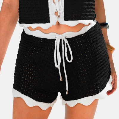 Product Name: Women's Black & White Chevron Crochet Cover Up Shorts with Drawstring Waist - Cupshe
