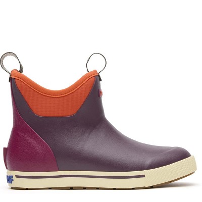 The Sharkbyte, by XTRATUF, is a low-cut, casual slip-on style. Water resisting nubuck leather uppers with a Dolly Vee print designed by FisheWear dress up these casual women's slip-on shoes. Performance features include a non-marking, slip-resisting Chevron outsole. Breathable mesh lining keeps feet cool on hot summer days and a Shaped EVA insole feels good underfoot.