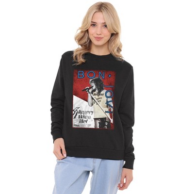 Women's Bon Jovi Slippery When Wet World Tour Crew Sweatshirt, Black, Small