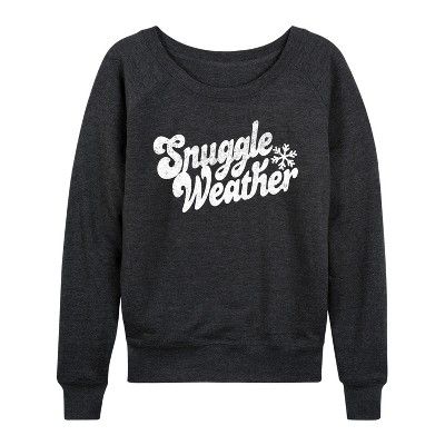 Women's Bratz Bling'd Out Logo Lightweight French Terry Wide Neck Long Sleeve Graphic Shirt - Heather Charcoal - Small