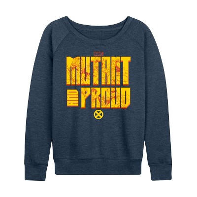 Women's Bratz Drama Mama Lightweight French Terry Wide Neck Long Sleeve Graphic Shirt - Heather Indigo - Small