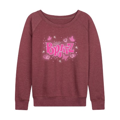 Women's Bratz Y2K Logo Lightweight French Terry Wide Neck Long Sleeve Graphic Shirt - Heather Maroon - X-Large