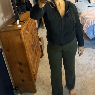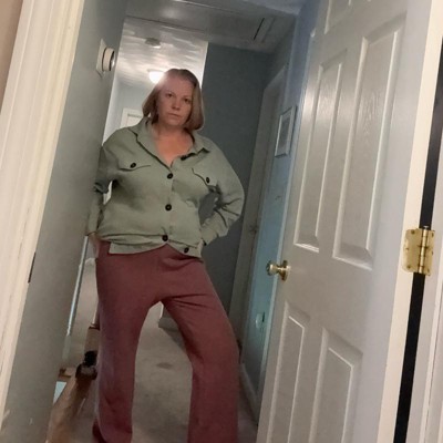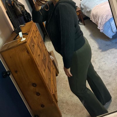 [This review was collected as part of a promotion.] These size large pants fit great although they do run a little big. While wearing them, i do feel like i am wearing sweatpants even though they look great while you’re in them. You can dress them up or dress them down if you wear heels or flats. I think I can wear brown, black, white or cream tops with these green pants. I love how they pull on and have a high waist. I am wearing a size large and feel as though I could easily size down.