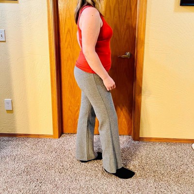 [This review was collected as part of a promotion.] I tried these brushed interlock pull on pants in grey, size MEDIUM by a New Day. The material was softer than I expected however I did not find these to be flattering at all. They were comfortable but I do wish they had pockets! The pants are high rise and have an elastic waistband. I am 5ft 3in and they were just a bit too long for me as well. They do fit true to size. They are bootcut pants.