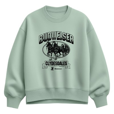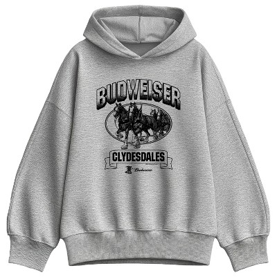 Budweiser - Bud Sweater - Ladies Oversized Fleece Hoodie Sweatshirt - Celebrate Americana with Budweiser graphic apparel—featuring the legendary red label and classic logo. Show off your love for the King of Beers in cool, comfortable style.