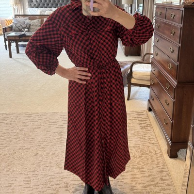 Ok, is it a bit oversized? Yes. Was I concerned when I ordered a XXS bc at the time XS was sold out? Yes. Am I beyond thrilled with the fit and feel of this dress? Yes. It is seriously SO CUTE on and my photo doesn’t even do it justice. I’m cooking Thanksgiving dinner this year and it is absolutely comfortable enough to wear all day and while I’m cooking. I paired it with my favorite Frye boots and this is definitely a winner. I’m normally an XS and the XXS is perfect. I’m 5’6” and the length was great. As long as you size down at least one size, you’re good to go!