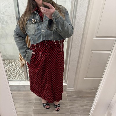 This Buffalo Check Long-Sleeve Utility Midi Shirt Dress from Woolrich x Target will keep you looking stylish and feeling comfortable wherever the day takes you. Made from lyocell twill fabric, this long-sleeve utility shirt dress is designed with a classic buffalo check pattern in red and black. Cut to a midi length and featuring a collared neck with a button-down front, it also has pockets that give you space for stashing small items.