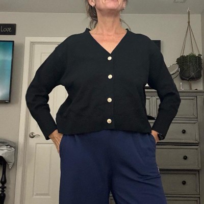 [This review was collected as part of a promotion.] A basic cardigan is a must have for the season and I was excited to find this one at such a reasonable cost. I am pictured here wearing a size XXL, which is my true size fit and overall this fit perfectly. The black color will go with just about everything in my closet and I love that I could wear it opened or buttoned up the front . The material is really soft and comfortable, and I can’t wait to wear it this winter.