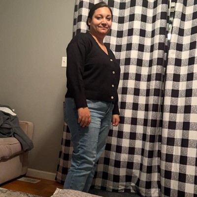 [This review was collected as part of a promotion.] I love the idea of this detailed gold button cardigan. The buttons itself are almost like a sailor, and I was looking for something thin to wear with the jeans. This sweater is definitely thin, and I did order it larger than I typically would. I typically would wear a large and this one is considered a 2X. It’s slightly big in the width, but definitely not big in the arms or the length. Definitely runs on the smaller end you can always size up and tuck it into.