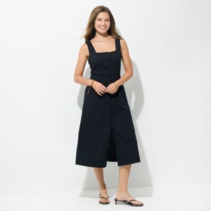 Enjoy the easy style of the Women's Button-Front Midi Dress from Wild Fable™ in black. Made from a lightweight woven material blend, it’s soft and breathable for all-day comfort. The square neckline keeps things simple, while the sleeveless cut and back tie detail add a relaxed feel. A phone pocket gives it a bit of function without taking away from the clean look. With a button-front design, it’s easy to wear and works well for casual days or laid-back evenings.