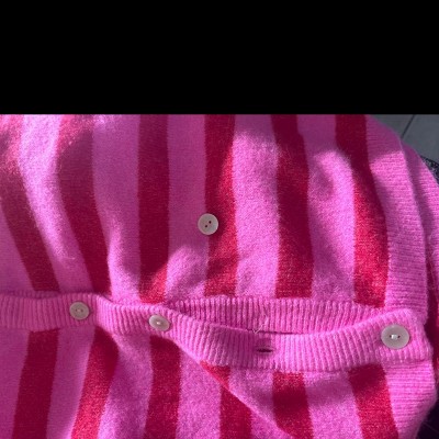 I bought both the yellow/ blue striped and pink one. These cardigans are SO SOFT and honestly seem pretty well made as well I appreciate the fact that around where the buttons go in is stitched. Super cute and so many ways round style would definitely recommend :) I purchased size S I’m 5’6 I would say it’s true to size but it just depends on how you want it to fit!