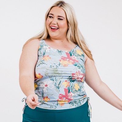 Calypsa Women's Plus Size Maya Tankini Swim Top WIth Removable Cups - Hawaiian Paradise, 6X
