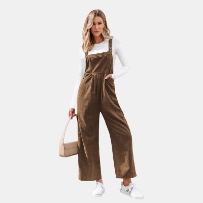 Product Name: Women's Camel Faux Suede Wide Leg Jumpsuit -Cupshe