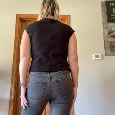 [This review was collected as part of a promotion.] This muscle shirt would make a great staple in your closet if you don’t mind a slightly cropped style. I really like the shoulder style and the thickness of the shirt. There is also a little bit of stretch to the shirt and that really helps with making it look nice for a fitted look. There is a slight ribbing to the material. I am typically a large and tops if I am looking for a more fitted look, and I ordered my normal size and the fit was true to size.