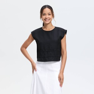 • A: This top has cap sleeves, adding a touch of elegance to its design.