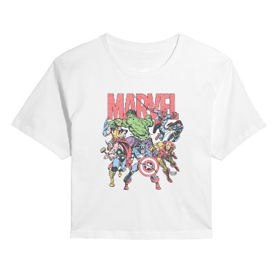 Women's Captain America Cap Airbrush Cropped Graphic T-Shirt - White - 2 X-Large
