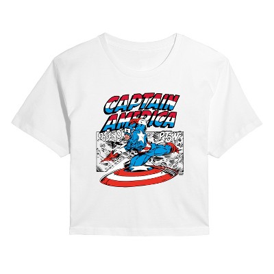 Women's Captain America Team Captain America Cropped Graphic T-Shirt - White - X-Large